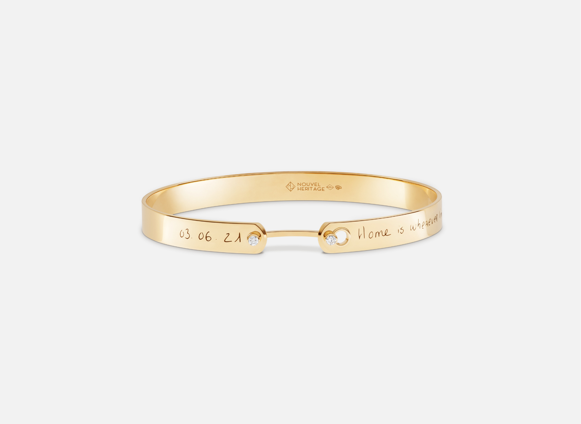 Your handwriting is uniquely yours, a personal trace no one else can replicate. We transform it into a finely engraved gold bangle, preserving every curve and nuance. Whether your own or that of a loved one, even small symbols or simple drawings can be beautifully rendered.