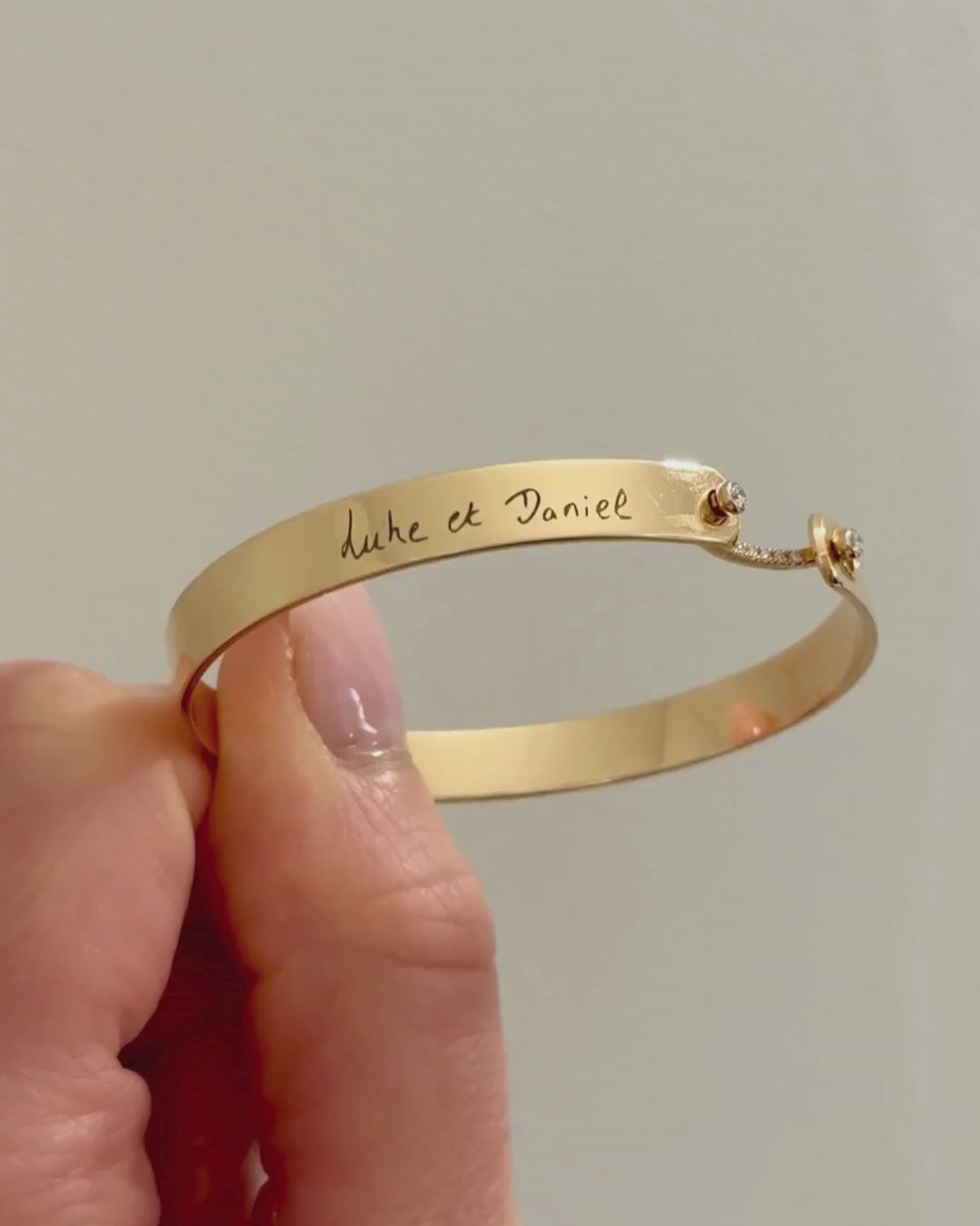 Your handwriting is uniquely yours, a personal trace no one else can replicate. We translate it into a finely engraved gold bangle, preserving every curve and nuance. Whether your own or that of a loved one, even small symbols or simple drawings can be included.