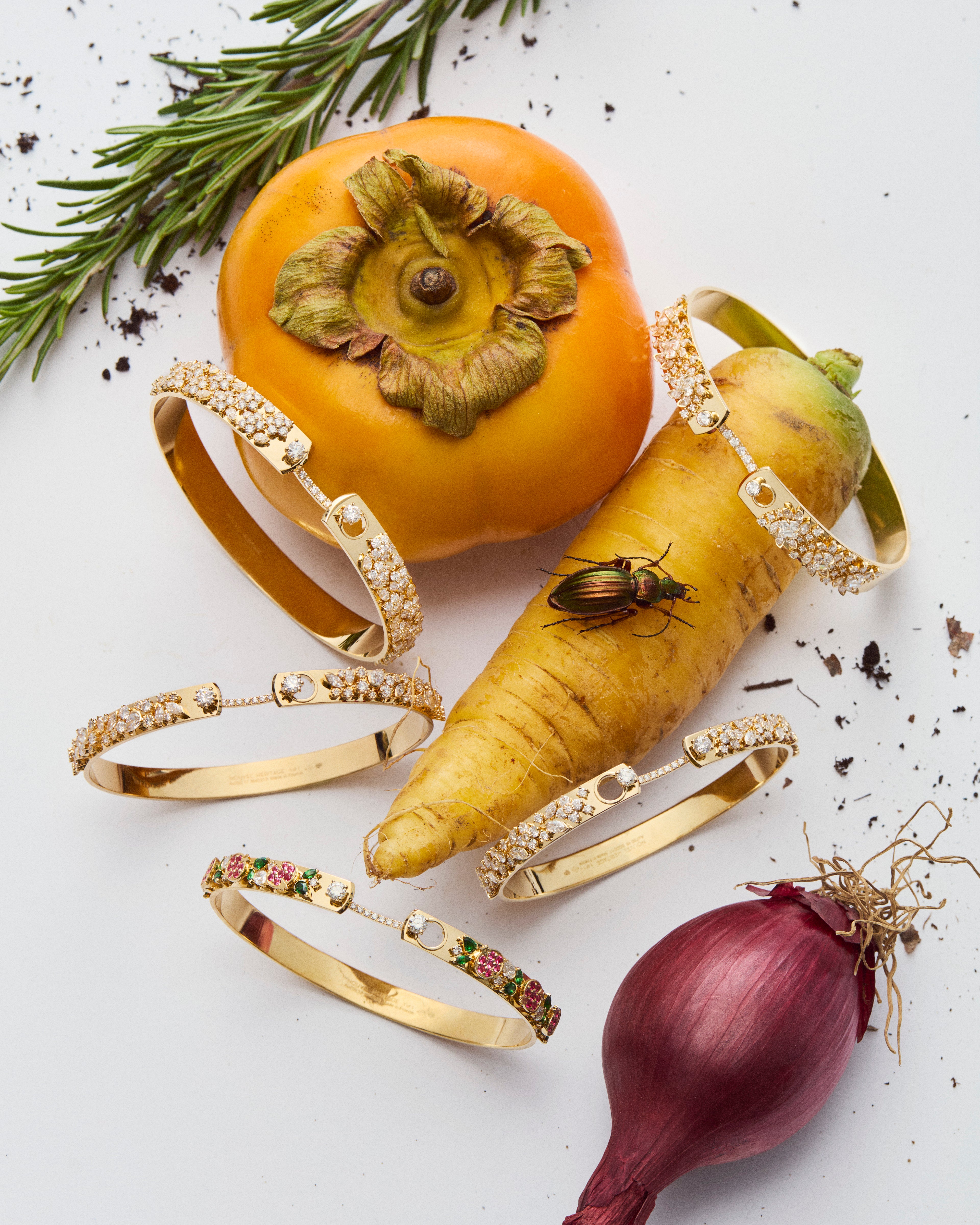 The intricate details engraved on each Mood bangle are inspired by the plants, flowers, and tiny creatures that inhabit these gardens. But gardening, for us, is also a family story.